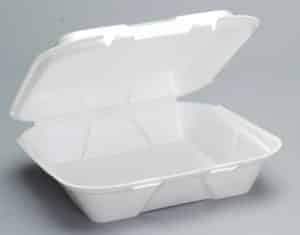 Genpak Large 1 Compt Hinged Container 9- 3/16”x9-9/16”x2-21/32” White Foam to-go to go (case)